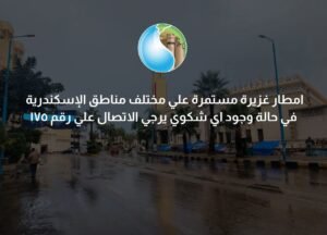 ونبهت شركة الصرف الصحي بالإسكندرية بوجود حالة عدم استقرار جوي مع استمرار الأمطار، مع التأكيد على استقبال طلبات المساعدة عبر رقم الطوارئ 175، ويتم حاليا تكثيف أعمال شفط وتصريف تجمعات مياه الأمطار بمناطق التجمعات لتسهيل حركة المرور، وكثفت الأجهزة التنفيذية بالمحافظة تواجدها الميداني على مدار الساعة.