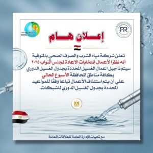 علي أن يتم استئناف الأعمال تباعا وفقًا للمواعيد المحددة بجدول الغسيل الدوري للشبكات.