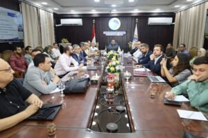 ناقش الاجتماع المتابعة الميدانية التي قام بها الوفد مع المكتب الاستشاري للمشروع (مكتب جوبا) وممثلي شركات مياه الغربية والدقهلية وكفر الشيخ.