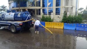 ورفعت شركة مياه الشرب والصرف الصحي بالدقهلية حالة الاستنفار ودفعت سياراتها لسحب تجمعات مياه الأمطار في مختلف أنحاء المحافظة.