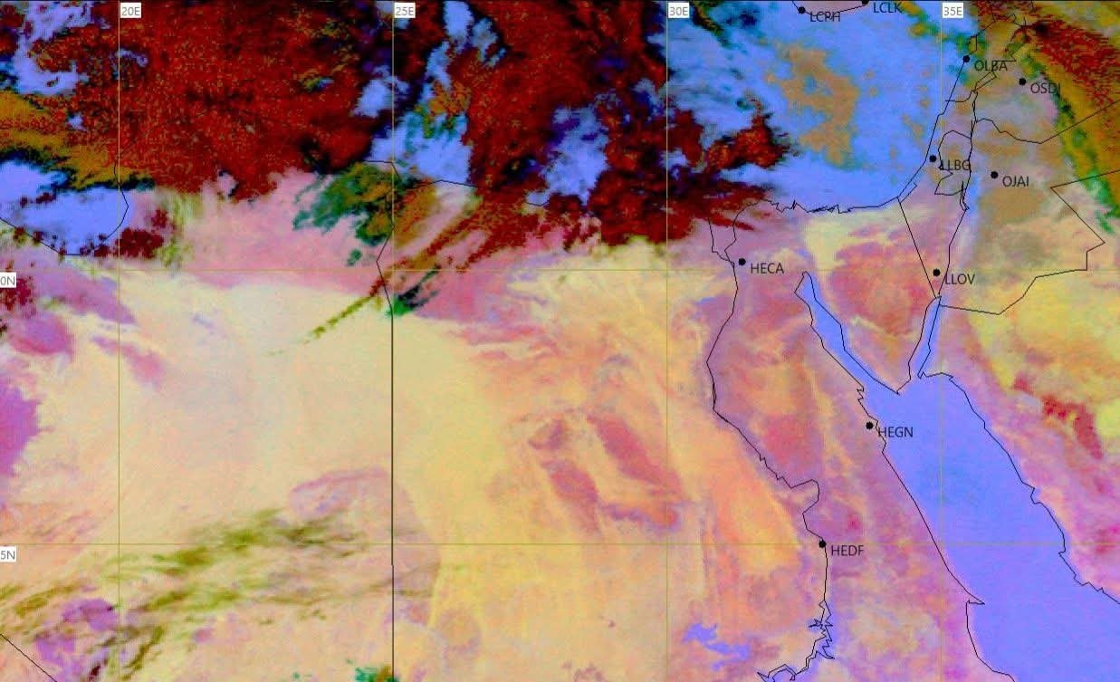 بينما يكون نشاط رياح يومي الإثنين 2 فبراير والثلاثاء 3 فبراير على مناطق من القاهرة الكبرى والوجه البحري والسواحل الشمالية وشمال الصعيد قد تكون مثيرة للرمال والأتربة على بعض المناطق.