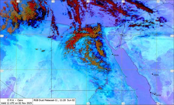 وأضافت أن السحب الرعدية الممطرة سوف تستمر على مناطق من الصحراء الغربية.