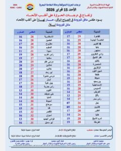 وفيما يلي بيان بدرجات الحرارة المتوقعة والظواهر الجوية..