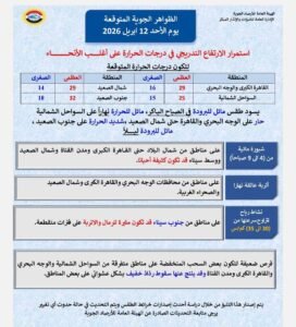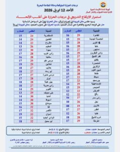 وفيما يلي بيان بدرجات الحرارة المتوقعة..