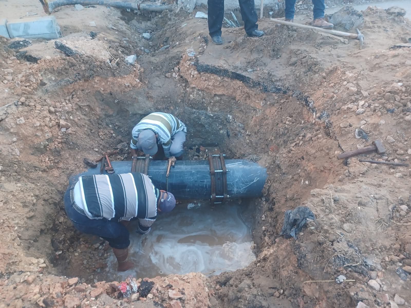 تابع اللواء دكتور علاء عبد المعطي، محافظ كفر الشيخ، جهود الأجهزة التنفيذية في صيانة خط مياه الشرب الرئيسي بقطر 400 مم بمركز بلطيم.