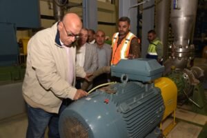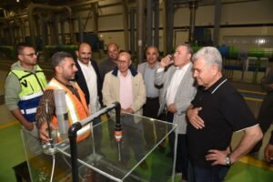 وفي سياق متصل، تفقد المهندس مصطفى الشيمي، والوفد المرافق له، محطة تحلية مياه البحر غرب العريش (الكيلو 17)، والتي تبلغ طاقتها الإنتاجية 100 ألف متر مكعب يوميًا، وذلك للوقوف على الحالة التشغيلية للمحطة ومتابعة كفاءة منظومة التحلية، وتضم المحطة عددًا من المكونات الرئيسية التي تشمل المأخذ البحري، بعدد (2) خط سحب بقطر 1800 مم وطول 1050 مترًا، وخط طرد بعدد (1) بقطر 1800 مم وطول 550 متر.