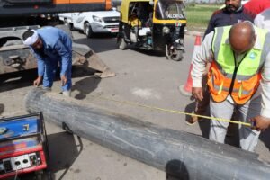 وأوضح أن فرق العمل بقطاع الصرف الصحي تحركت فور ملاحظة ضعف سحب المياه داخل الخط، حيث تبين وجود تسريب غير مرئي ناتج عن كسر داخلي أثر على كفاءة تدفق المياه، وعلى الفور تم الدفع بمعدات وسيارات الكسح إلى موقع الإصلاح، مع تنفيذ مسح شامل بطول الخط البالغ نحو ٣ كم باستخدام أحدث أجهزة الكشف عن التسربات، حتى تم تحديد موقع العطل بدقة.