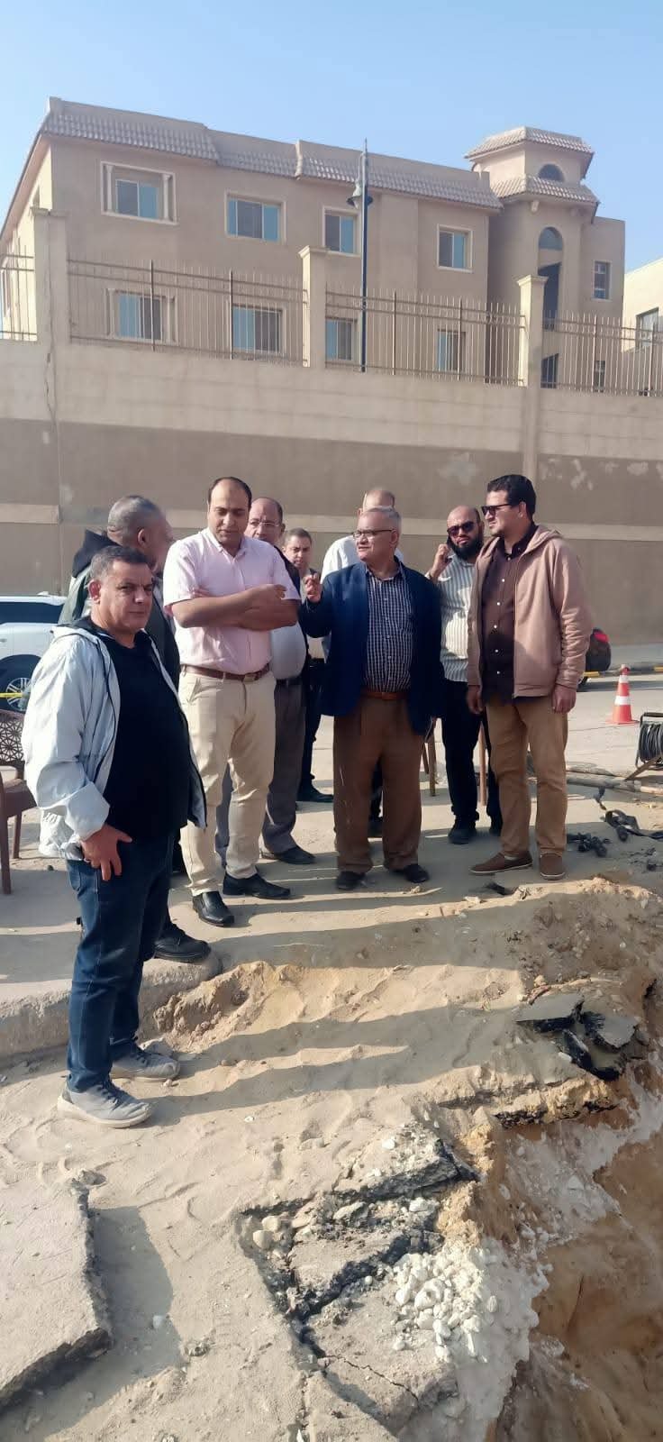 يتابع المهندس محمد حفناوي، رئيس شركة مياه الشرب والصرف الصحي بالجيزة، أعمال إصلاح كسر خط الحمأة قطر ٨٠٠ مم بمدينة الشيخ زايد، يرافقه عدد من قيادات الشركة ومسؤولي الصيانة والطوارئ.