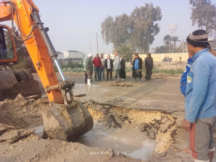 انفجار مفاجئ بخط مياه قطر ٣٠٠ مم بالفيوم.. ومتابعة شديدة من وليد سعيد
