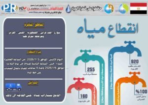 أعلنت شركة مياه الشرب والصرف الصحي بسوهاج انقطاع المياه عن شوارع أحمد عرابي، والجمهورية، والجيش، والجزائر، وتفرعاتها بمركز طما، وذلك اليوم الاثنين الموافق 5 يناير 2026، اعتبارًا من الساعة العاشرة مساءً وحتى الساعة الثانية صباح يوم الثلاثاء الموافق 6 يناير 2026، ولمدة 4 ساعات.