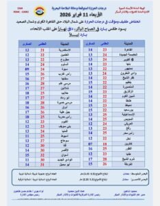 وفيما يلي بيان بدرجات الحرارة المتوقعة والظواهر الجوية..