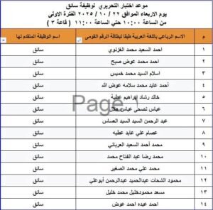 وأوضحت الشركة أنه تم قبول عدد من التظلمات، وتم تحديد موعد إجراء الاختبارات التحريرية للمتقدمين الذين تم قبول تظلمهم، وذلك يوم الأربعاء الموافق 22 أكتوبر 2025، بمركز التدريب الإقليمي للشركة بمحطة مياه العدلية، وفق المواعيد المحددة بالكشوفات المرفقة.