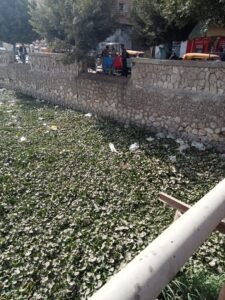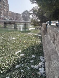 - السلوكيات الفردية: تظهر الصورة تراكم القمامة والمخلفات الصلبة، مما يعكس غياب الوعي البيئي لدى البعض، وهو ما يحول المجرى المائي من شريان للحياة إلى بؤرة للتلوث.