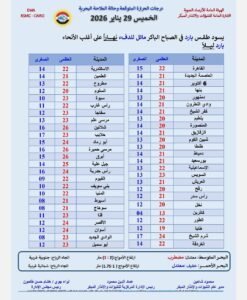 وفيما يلي بيان بدرجات الحرارة المتوقعة والظواهر الجوية.
