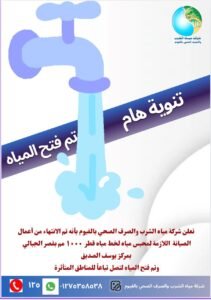 وأكدت الشركة أن فرق الصيانة والتشغيل أنهت الأعمال في الوقت المحدد، وتم إعادة فتح المياه تدريجيًا لضمان وصولها بشكل آمن ومستقر إلى جميع المناطق التي تأثرت بالتوقف.