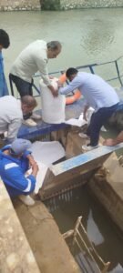 وفي هذا الإطار، تم الاستعانة بشركة مياه الشرب بالقاهرة، إحدى الشركات التابعة للشركة القابضة، لدعم أعمال تركيب الحواجز الوقائية بمحيط مآخذ المحطة، بما يضمن سرعة التنفيذ ورفع كفاءة إجراءات الحماية.