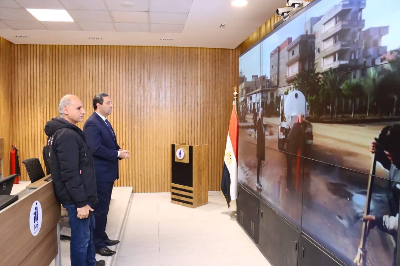 واطلع المحافظ على مجمل الإجراءات التي تم اتخاذها منذ بداية سقوط الأمطار، والدفع بالفرق الفنية والمعدات وسيارات الكسح، مؤكدًا استمرار رفع درجة الاستعداد القصوى لحين انتهاء الموجة، مع الرفع الدوري لتجمعات مياه الأمطار، والتأكد من جاهزية بالوعات صرف الأمطار لتسهيل السيولة المرورية وحركة المارة.
