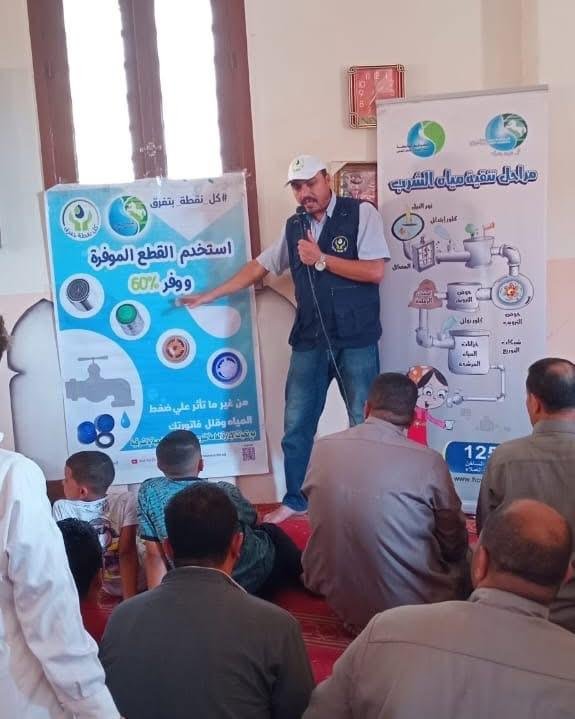 وتناولت الندوة أهمية ترشيد استهلاك المياه، وطرق التخلص الآمن من مخلفات الصرف الصحي، إلى جانب التعريف بمراحل تنقية مياه الشرب. كما تم توضيح مخاطر استخدام الطلمبات الحبشية من خلال تحليل عملي لنسبة الأملاح العالية بها، والتي تشكل خطورة على الصحة العامة.