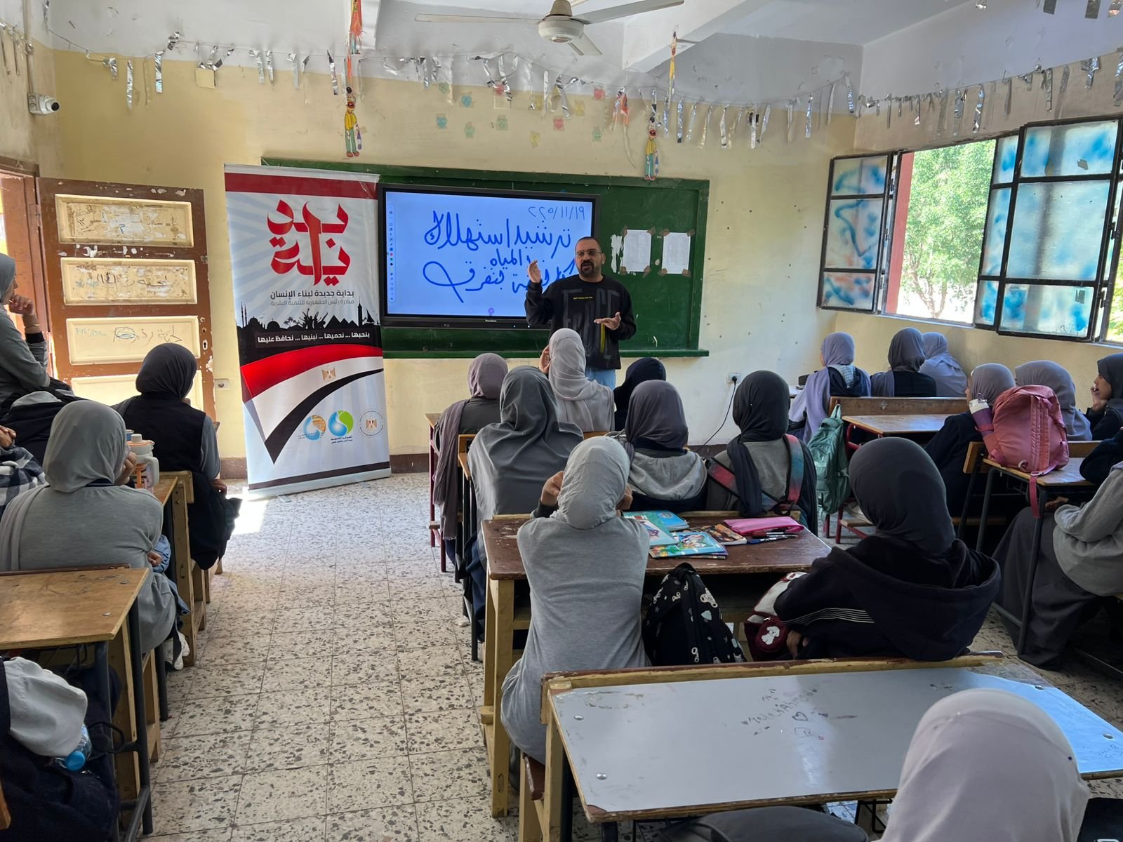 نظمت شركة مياه الشرب والصرف الصحي بقنا، اليوم، ندوة توعوية حول الحفاظ على المياه وتكوين أسرة واعية بأهمية ترشيد الاستهلاك، بمدرسة فاطمة الزهراء الثانوية بنات لرفع الوعي المائي لدى الطلاب.