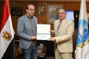 كرَّم اللواء محمد عبدالفتاح، رئيس شركة مياه الشرب والصرف الصحي بالغربية، فريق العمل الفائز بـ “جائزة مصر للتميز الحكومى” (فئة المبادرات الابتكارية) عن مشروعهم الرائد لتطوير “منظومة الكلور السائل“.