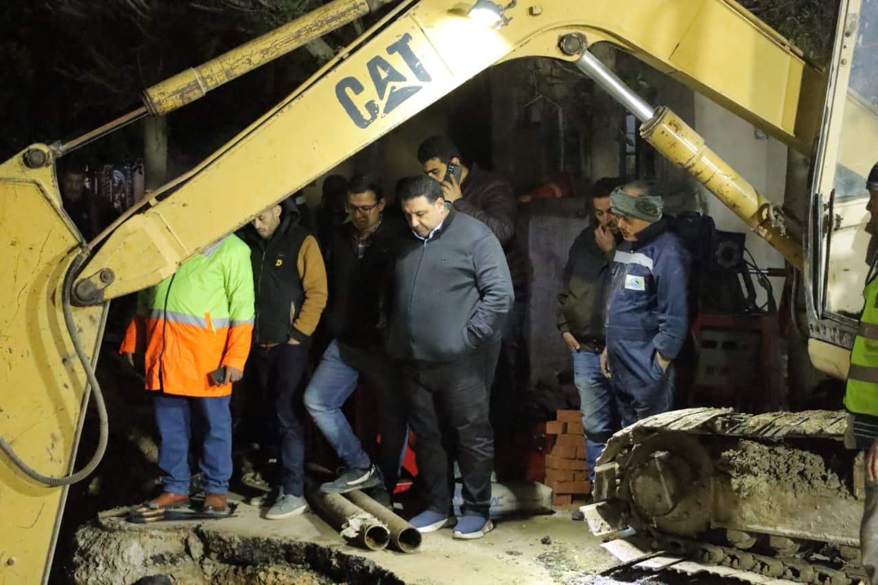 تواجد ميداني لرئيس مياه البحيرة لمتابعة إصلاح كسر مفاجئ بخط 800 مم بأبو حمص