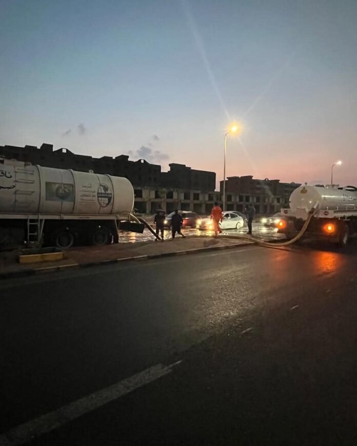 طوارئ الغردقة تكثف جهودها لشفط تجمعات الأمطار من الشوارع