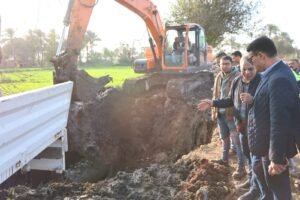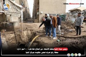المهندس حسن يحيى رئيس شركة مياه المنيا يتابع إصلاح خط الطرد بمدينة المنيا