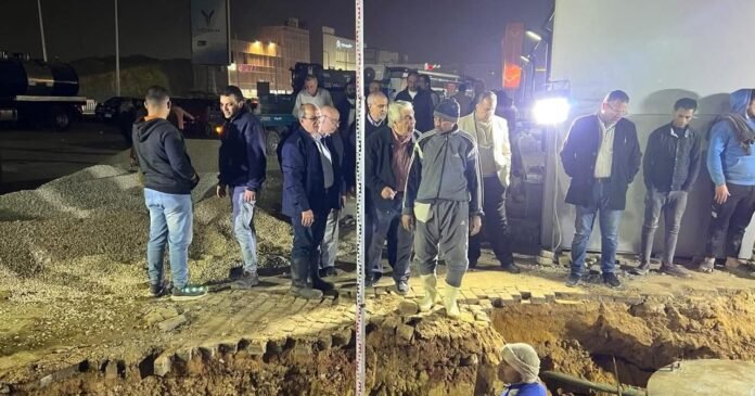 المهندس محمد فودة رئيس شركة مياه الشرب بالقليوبية يتابع أعمال إصلاح الكسر
