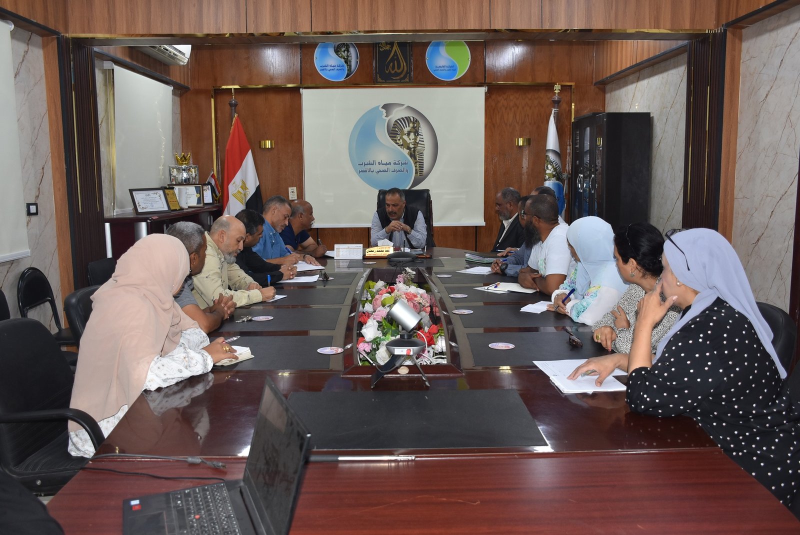 وتضمن الاجتماع استعراض خطة غسيل وتطهير شبكات المياه التي تنفذها الشركة بانتظام في نطاق المحافظة، وتشمل أعمال التطهير وضبط نسب الكلور المستخدمة في الخطوط الرئيسية والفرعية.