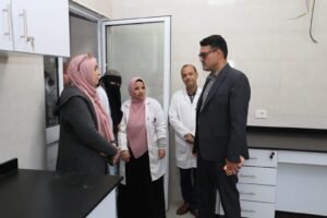 المهندس محمد فودة رئيس مياه القليوبية خلال زيارته أحد معامل التحاليل