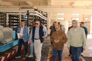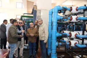 تفقد المهندس أحمد جابر رئيس الشركة القابضة لمياه الشرب والصرف الصحى يرافقه اللواء عاصم شكر نائب رئيس الشركة القابضة واللواء مهندس بهاء عبد المنعم سيد الأهل رئيس شركة مياه البحر الأحمر محطة تحلية المياه بمدينة سفاجا طاقة 7000م 3/يوم.