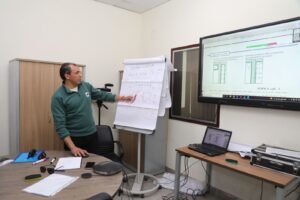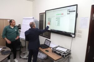 وخلال جولته التفقدية، تابع شحاته جانباً من التدريب المخصص لمهندسي الكهرباء ضمن برنامج المسار الوظيفي لمهندسي الصيانة الكهربائية، حيث تلقى المتدربون تدريباً عملياً على لوحات الجهد المنخفض وآليات تشغيلها والتعامل معها وفق أحدث الأساليب الفنية، بما يسهم في رفع كفاءة الأداء وتحسين جودة العمل داخل مواقع الشركة المختلفة.