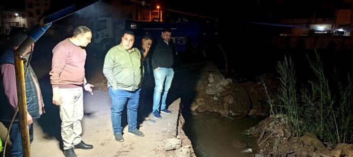 رئيس «مياه البحيرة» يتفقد أعمال إصلاح خط GRB ليلاً.. صور