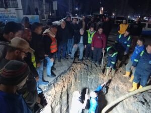 تفقد المهندس محمد سعيد نشأت، رئيس مجلس الإدارة والعضو المنتدب لشركة مياه الشرب والصرف الصحي بالدقهلية، بمتابعة أعمال إصلاح كسر خط مياه العكرة الخاص بمرفق مياه منطقة شرق المنصورة، قطر 1000 مم، بشارع قناة السويس بمدينة المنصورة، للاطمئنان على انتظام سير العمل وسرعة الانتهاء من الإصلاح.