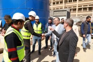 تابع أعمال إعادة تأهيل ورفع كفاءة محطة مياه عمر بن الخطاب النقالى بـ 4 وحدات لزيادة الضغوط داخل المدينة، موجهاً بسرعة الانتهاء من التنفيذ طبقاً للجدول الزمني والمواصفات الفنية المعتمدة.
