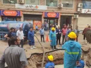 تابع اللواء مهندس محمد عبد الفتاح، رئيس مجلس الإدارة والعضو المنتدب لشركة مياه الشرب والصرف الصحي بالغربية، يرافقه اللواء ضياء الدين عبد الحميد، رئيس مركز ومدينة زفتى، أعمال إصلاح كسر مفاجئ بخط مياه رئيسي بقطر 600 مم بمدينة زفتى.
