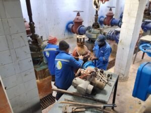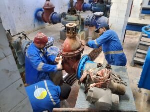 وجاءت أعمال الصيانة بالمرحلة الأولى بالمحطة ضمن خطة الشركة للحفاظ على كفاءة التشغيل واستمرارية ضخ المياه للمواطنين، وشملت صيانة ستة محابس لطرد طلمبات المياه المرشحة قطر ٣٠٠ مم، وصيانة محبس هواء قطر ٢٠٠مم/١٥٠٠ مم، بالإضافة إلى صيانة محبس خط خدمات قطر ٤٠٠ مم، وصيانة جهاز حقن الكلور، وتنفيذ صيانة شاملة للوحات التوزيع الكهربائية، وتركيب علبة إصلاح كابل كهربائي بعنبر المرشحات.