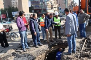 تفقد المهندس وليد سعيد، رئيس شركة مياه الشرب والصرف الصحي بالفيوم، موقع العمل على إصلاح كسر بخط مياه الشرب قطر ٢٥٠ مم بميدان المسلة للاطمئنان على سير الأعمال بالسرعة و الكفاءة المطلوبة.
