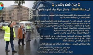 الرئيسيةالرئيسيةرئيس مياه القناة يوجه الشكر للعاملين لمجهودهم خلال موجة الطقس السيئ
