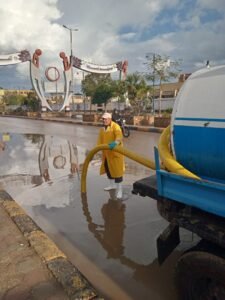 وذكر، تتمركز معدات الشركة بمختلف شوارع المحافظة على مدار اليوم لكسح مياه الأمطار وتسليك بالوعات الصرف للتأكد من تصريفها للمياه أولاً بأول لمنع تراكمها بالشوارع وفتح الطريق أمام حركة السيارات وعبور المواطنين.