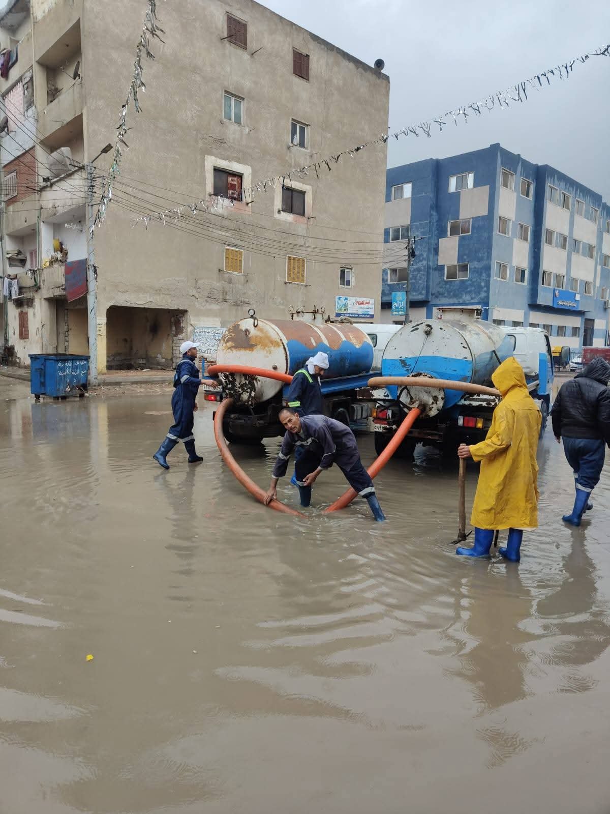 يواصل رجال شركة مياه الشرب والصرف الصحي بالبحيرة جهودهم المتواصلة على مدار الساعة لرفع تجمعات مياه الأمطار بجميع مراكز ومدن المحافظة، غير عابئين بسوء الأحوال الجوية، من أجل راحة المواطنين واستمرار انتظام الخدمات.