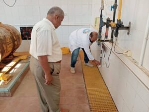 وخلال الجولة، تابع رئيس الشركة ومرافقوه جميع مكونات المحطة والتي تبلغ طاقتها التصميمية 26000 متر مكعب يوميًا، لخدمة نحو 175 ألف نسمة في مرحلتها الأولى، كما راجع سجلات التشغيل وسجلات المعمل الخاصة بفحص العينات للتأكد من مطابقة المياه المنتجة للمعايير والمواصفات القياسية. ووجه بضرورة الالتزام الكامل بمعايير التشغيل والصيانة وجاهزية المولدات داخل المحطة لضمان استدامة تقديم الخدمة للمواطنين بالمواصفات المطلوبة.
