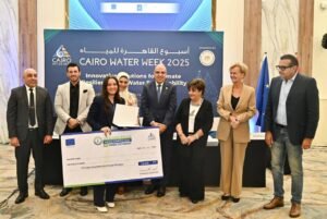 شهد السيد الأستاذ الدكتور/ هاني سويلم، وزير الموارد المائية والري، والسيدة السفيرة/ أنجلينا إيخهورست، رئيسة بعثة الاتحاد الأوروبي في مصر، فعاليات جلسة “حملة على القد”، والتي جاءت ضمن فعاليات “أسبوع القاهرة الثامن للمياه”. تضمنت الجلسة تقييم عدد من الفيديوهات والبوسترات المقدمة من طلبة الجامعات المصرية ضمن مسابقة “حملة على القد”، والتي تنعقد بالتعاون بين وزارة الموارد المائية والري والاتحاد الأوروبي.