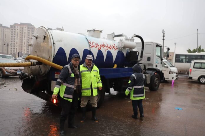 في إطار جهود شركة الصرف الصحي بالإسكندرية للتعامل مع تداعيات النوة الحالية، تواصل فرق الطوارئ أعمال كسح وشفط مياه الأمطار والتعامل الفوري مع أي تجمعات مائية داخل الموقف الجديدة بمنطقة غرب.