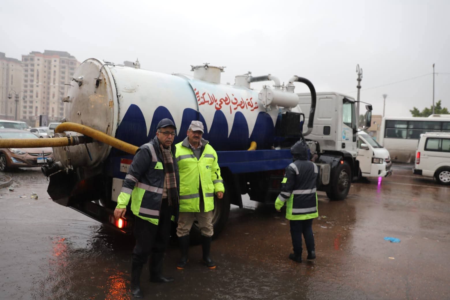 ويتابع المهندس سامي قنديل، رئيس الشركة، ميدانيًا، انتظام العمل بالموقع، حيث تم الدفع بالمعدات اللازمة وسيارات الشفط، لضمان سرعة رفع المياه ومنع أي تكدسات تعيق حركة المواطنين أو المركبات داخل الموقف.