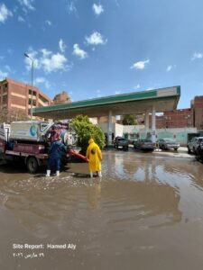 وأكد المهندس عادل حسن أن جميع فرق العمل تعمل على قدم وساق لضمان التعامل الفوري مع تجمعات المياه ومنع أي تراكمات.