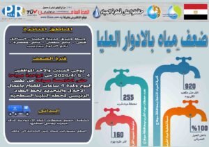 أعلنت شركة مياه الشرب والصرف الصحي بسوهاج ضعف المياه بالأدوار العليا بوسط وشرق مدينة البلينا، والساحل قبلي، ونجع سلمان، ونجع المعصرة، ونجع الدلوة ببرديس، وذلك يومي السبت والأحد الموافقين 4 و5 أبريل 2026، من الساعة الواحدة صباحًا وحتى الخامسة صباحًا من نفس اليوم، لمدة 4 ساعات.