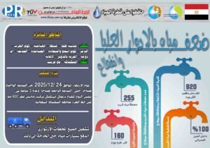 أعلنت شركة مياه الشرب والصرف الصحى بسوهاج ضعف المياه بمدينة طما وقرى مشطا والعتامنة وكوم العرب والمدمر وكوم اشقاو والسعادة والحسامدة والحديقة وأم دومة والقرية بالدوير والاغانة بقريتى السكساكة وقاو غرب وانقطاعها يوم الأربعاء الموافق 24 ديسمبر 2025 الواحدة صباحا وحتى الساعة الرابعة صباحا ولمدة 3 ساعات.