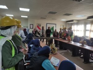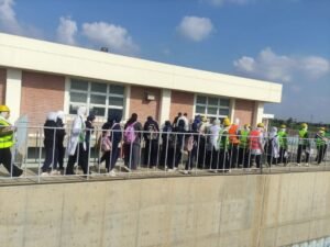 وتضمنت الزيارة تعريف الطالبات بمراحل تنقية مياه الشرب، بدءًا من دخول المياه عبر المأخذ، مرورًا بتفقد المعامل وشرح آلية رفع عينات المياه بكل مرحلة، وأهم التحديات التي تواجه عمليات التنقية، ومراحل إنتاج الشبة والكلور، ثم الانتقال إلى خزانات المياه العكرة، والمروقات والمرشحات بمراحلها المختلفة، وانتهاءً بمرحلة إضافة الكلور النهائي ومرور المياه إلى الخزانات الأرضية ثم الشبكة الخارجية وصولًا إلى المنازل والمواقع المختلفة التي تغذيها المحطة.