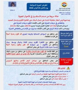 يأتي هذا الطقس وسط تحذيرات بضرورة توخي الحذر أثناء التنقل، خاصة على الطرق المفتوحة، ومتابعة التحديثات الجوية أولًا بأول.